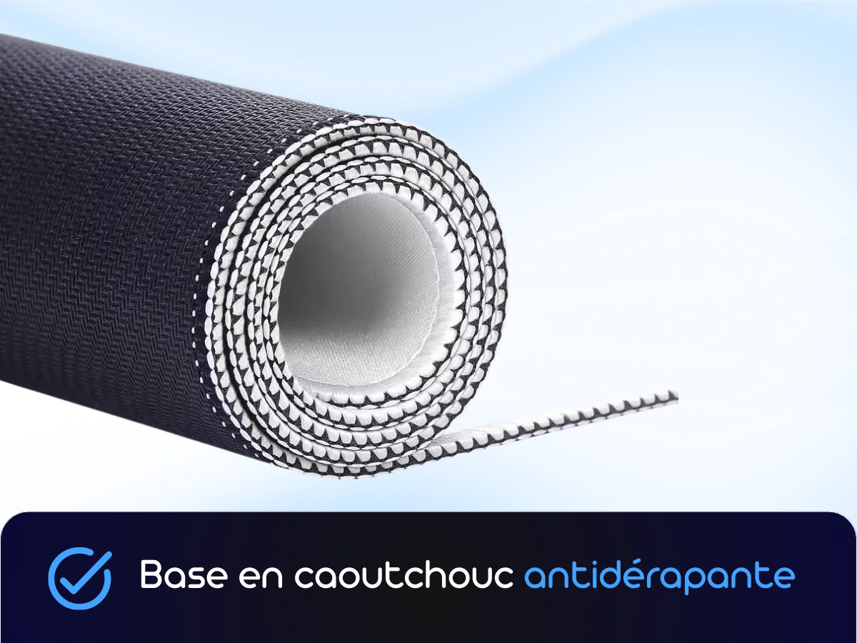 Stabilité Maximale : Fabriqué avec une base en caoutchouc de haute qualité, ce tapis reste parfaitement en place, même lors de mouvements rapides et intenses.