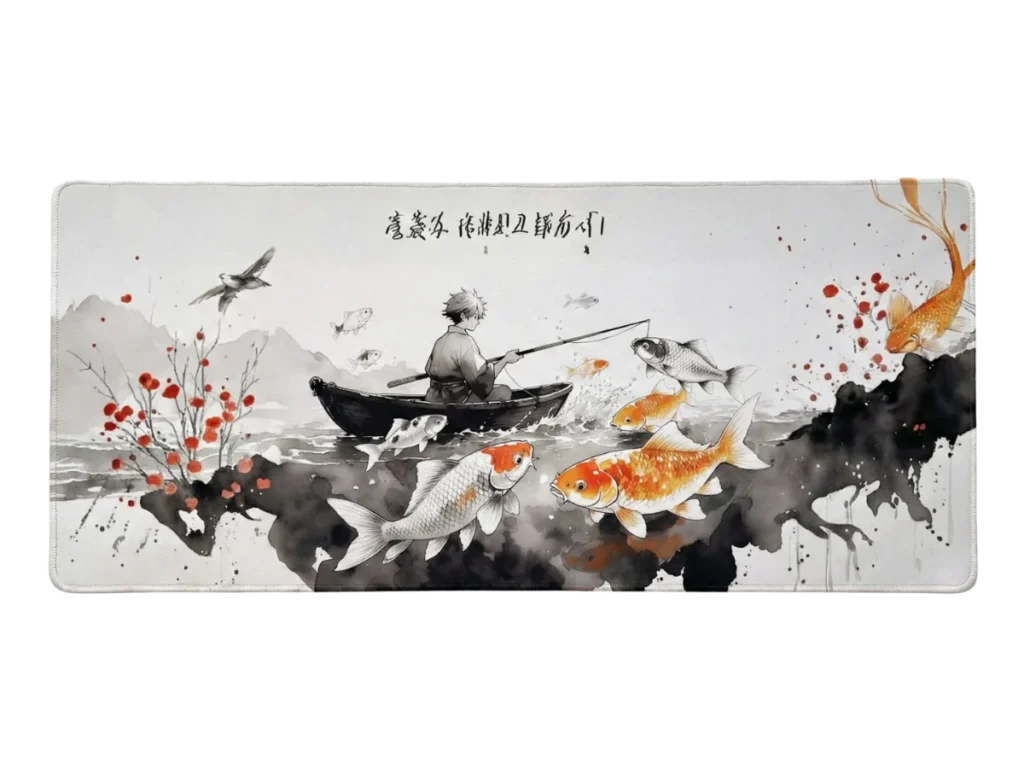 Pour un univers encore plus intimiste, le Tapis de Souris Garçon Pêcheur illustre un jeune garçon entouré de carpes koï et d’un oiseau dans une atmosphère douce et poétique. L’illustration évoque les récits de jeunesse de l’animation japonaise, avec une palette de couleurs chaudes et apaisantes.